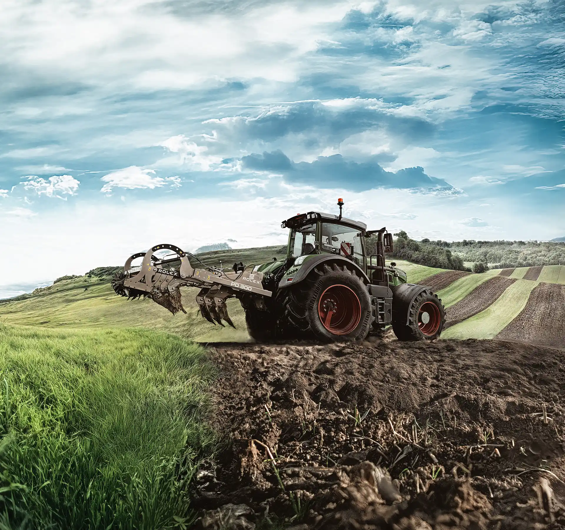 The visual identity was built around the concept of “Fluid Blocks” — a modular system of soft, interconnected shapes. The idea was to give the tractor a digital, almost app-like look — something that feels modern, tech-driven, yet rooted in agriculture. The logo merges precision and fluidity, creating an abstract machine form that moves forward through design. The color palette — deep navy, mint, and cool green — adds clarity and freshness, while the italic lettering and double-arrow “K” reinforce motion, innovation, and flow.